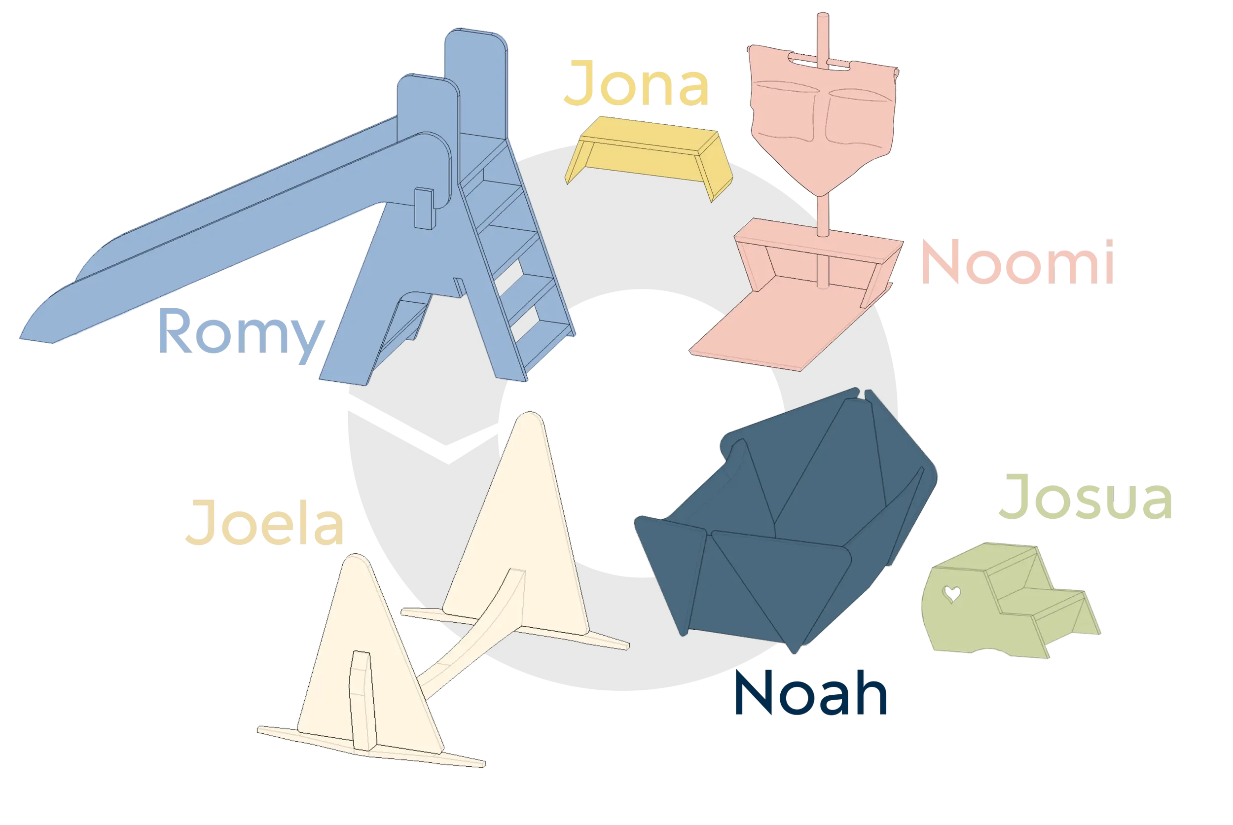 Wandelbar: Wiege → Spielschiff → Bank → Tisch → Rückzugsort → Rutsche